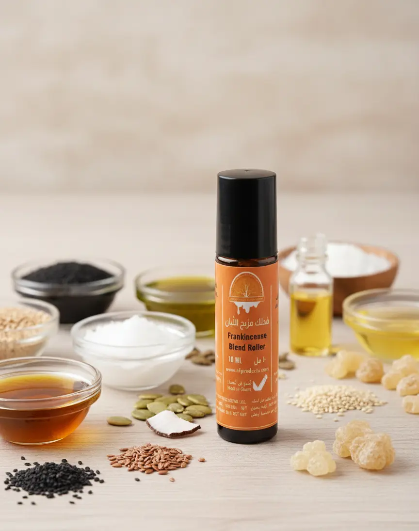 Nature’s most potent oils in one concentrated drop. Our Frankincense Blend Roller is a nutritional powerhouse for your skin. This master-blend combines the restorative “King of Oils”—Omani Frankincense—with a synergistic mix of nutrient-dense botanical oils. Designed for targeted application, this roller delivers a concentrated dose of antioxidants and fatty acids to revitalize tired skin and promote a healthy, youthful radiance on the go.